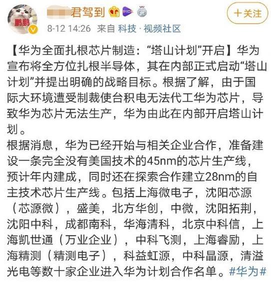 值得注意的是,对"塔山计划"的说法,华为海思员工予以了否认。