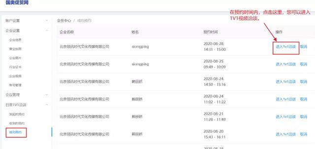 □ 在预约时间内,点击进入【1V1洽谈】,可以与业务伙伴开始跨国视频洽谈