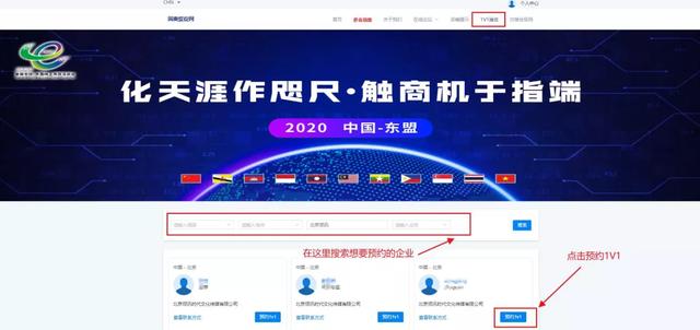 □ 点击首页的【1V1洽谈】,进入下方页面,在搜索框输入关键信息,找到想要预约的联系人,点击预约