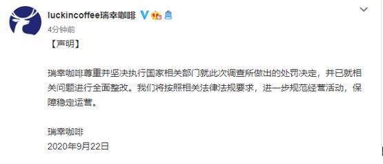 公告发出当日,瑞幸咖啡便立即对此裁决作出回应,对此裁定表示尊重,并会坚决执行此项处罚规定。瑞幸咖啡表示,目前,瑞幸咖啡已就相关问题进行了全面整改,而未来会更加注重在法律法规范围内进行生产经营活动,以此保证稳定运营。