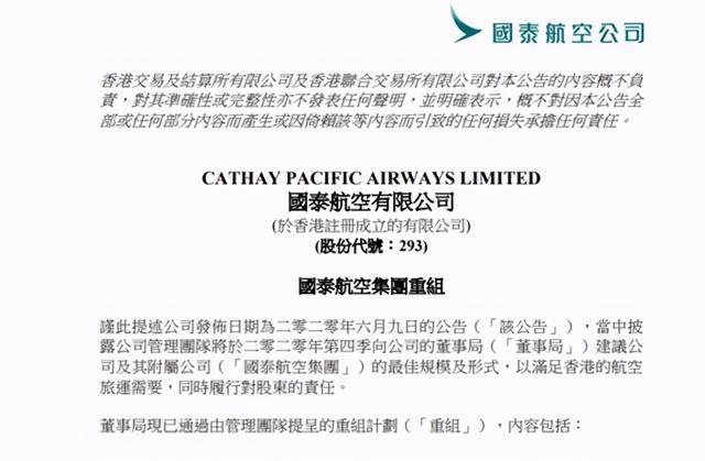 此次重组成本约为22亿港元,将以国泰航空内部资源拨付,公司将就重组作出13亿港元的递延税项资产减值,在2020年度财报中将考虑计入其他减值及支出,值得一提的是,这是继此前的资本重组计划推出后的又一"自救"措施,今年6月9日,国泰航空公布一项资本重组计划,集资总额约390亿港元,其中香港特区政府共投资273亿港元。