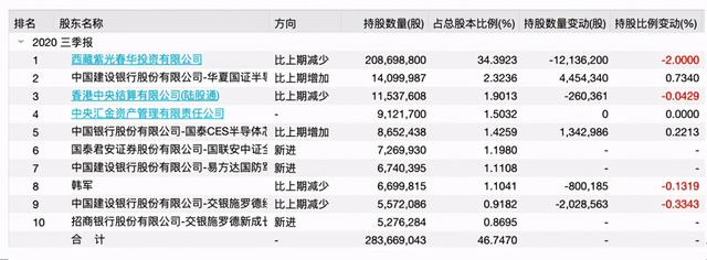 从2020年前三季度的持股情况来看,紫光国微的前十大流通股东中,机构占据9席,合计持股占总股本占比超45%。