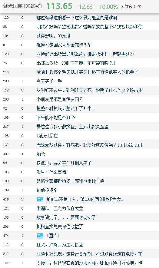 "业绩不错居然还跌停,怀疑人生了",有用户发出这样的疑问,面对突然的闪崩跌停,有分析指出,市场给的业绩预期太高或是主要原因,"紫光国微股价在业绩公告之后跌停,与其实际业绩低于市场预期有关"。