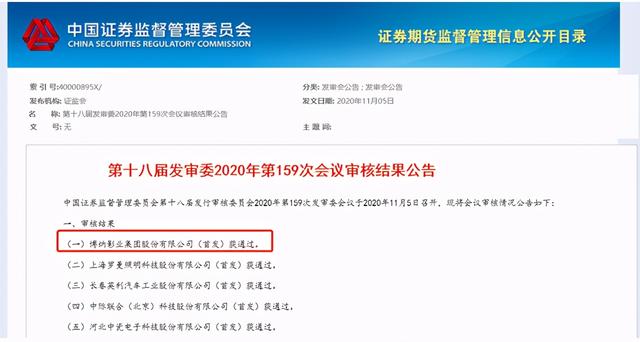 11月5日晚间,国证监会官网发布第十八届发审委2020年第159次会议审核结果公告,博纳影业集团股份有限公司(首发)获通过,这意味着博纳影业已经取得了A股IPO进程的关键胜利,接来下招股、定价、挂牌等常规动作过后,博纳影业将正式登陆深交所中小板。