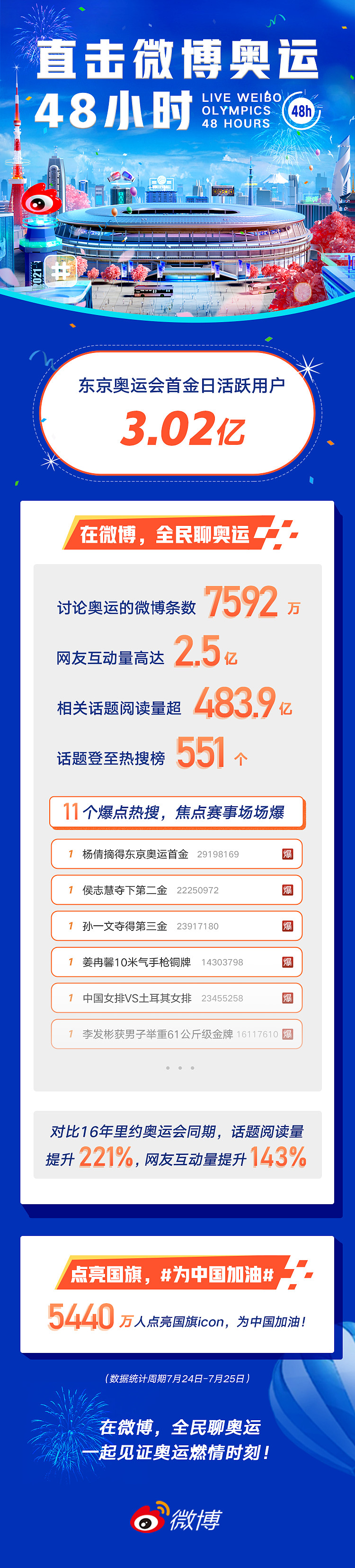 2021年三季度适逢东京奥运会,因为暑假的原因叠加奥运热点效应的双重辐射,微博用户在7月和8月达到疫情后的最高峰,尤其是在奥运会时,中国队的首金日,在冲击首金等关键词的带动下,微博日活跃用户达到了3.02亿,整个奥运期间,微博和奥运相关的话题总阅读量超4252亿次,其中互动量1.5亿,比2016年里约奥运会分别提升了1500%和245%。