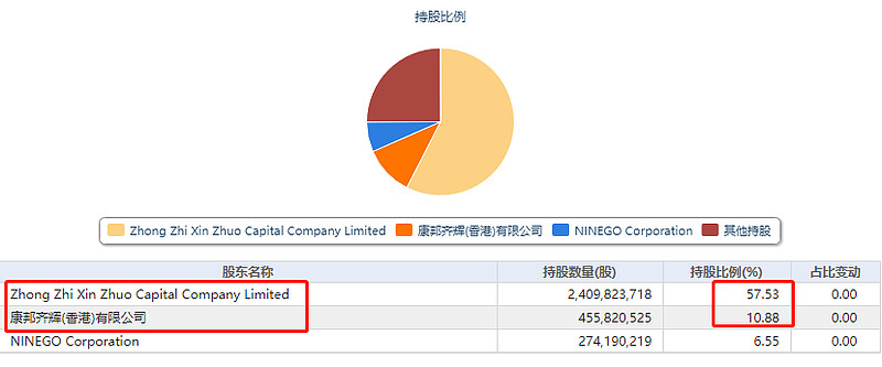 中金科技服务作为港股上市公司,11月发布的2021年中期报告显示,解先生作为本公司的最终实益拥有人,透过Zhong Zhi Xin Zhuo Capital Company Limited及康邦齐辉(香港)有限公司,持有已发行股本总额约68.41%。
