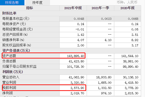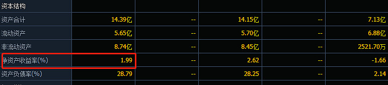 按报告期看,截至2021年6月30日止,净资产收益率为1.99,按年度看是2.62%.数据较差。