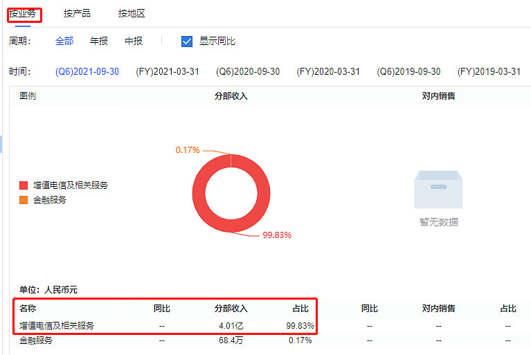按业务看,主营构成上,增值电信及相关服务收入,营收占比99.83%。业务类型主要有五大方面,包括股权投资。海外业务,定增配售,并购基金,投行增值服务。