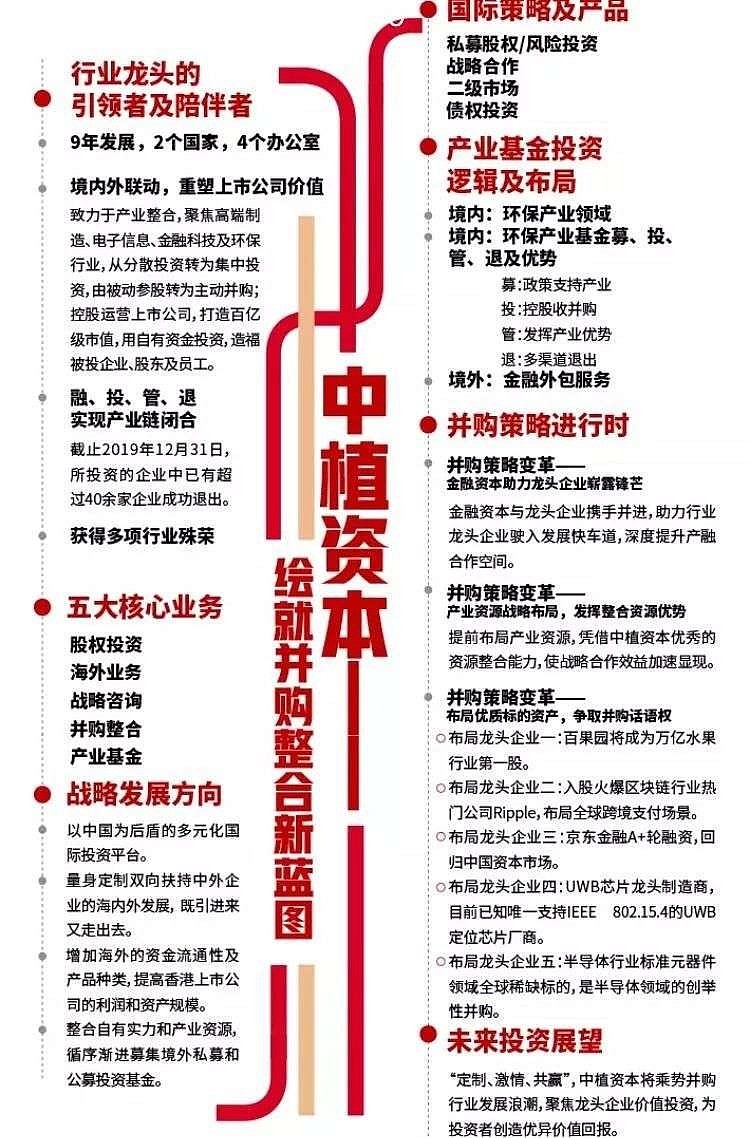 作为行业龙头的引领着和陪伴着,聚焦五大核心业务,在战略发展方向指引下,10年来不断进行产业布局和并购。在不确定中寻找确定,打造了自我闭环投资模式,多产业链,多行业链,资本充足的背景下,全球化资产配置,多元化退出渠道,立体化行业研究体系,5月12日,荣获投中榜年度中国最佳并购基金。哪里机会多,资本就去掺和一脚,主营业务还是钱生钱的游戏,一二级市场套利,金融遍地开花,也是打造了多个经典案例。