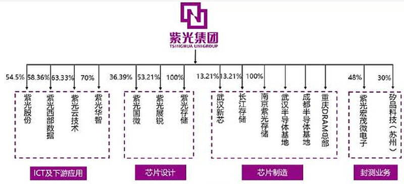 在疯狂并购的同时,赵伟国联合了美国西部数据成立紫光西数、组建长江存储、控股上海宏茂微电子、收购法国Linxens集团等,鼎盛时期,紫光集团一度接近收购存储芯片大厂美光、代工巨头台积电等,最终因诸多原因而未能成功。但这一系列举动帮助紫光集团实现了在通讯芯片、存储芯片、FPGA设计等方面的广泛布局。