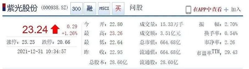 此刻紫光股份的股价为23.24元,市值664.68亿元,2015年6月17日紫光股份股价曾高达139.5元,市值3990亿元,截至目前市值蒸发了3326亿元,蒸发率高达83%。但是迎来的曙光是紫光国微涨停,这个算是重组后的一个好消息。