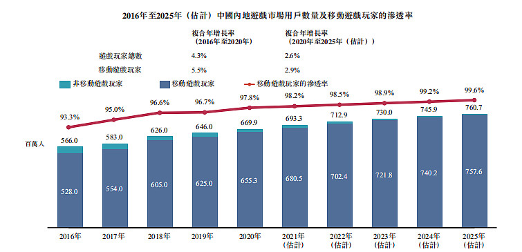 中国游戏市场参与者前五合计占市场份额的72.5%,而排名前二的市场参与者合计占市场份额的60.4%。青瓷的市场份额仅占0.4%,排在第20名。