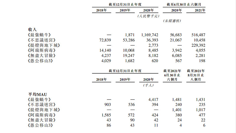 2020年以来收入暴涨 原因主要来源于核心手游《最强蜗牛》的贡献,该游戏于2020年和2021年上半年贡献收入约92%和68%。净利润方面,2018年、2019年、2020年以及截至2021 年6月30日止的前六个月分别为2486万、1963万、1.04亿和亏损9379万元人民币,剔除可转换可赎回优先股的公允价值变动损益和金融工具公允价值变动损益后,2018年、2019年、2020年以及截至2021年6月30日止的前六个月净利润分别为2486万、2292万、1.10亿和2.99亿元人民币。可以说青瓷能够在港交所上市,《最强蜗牛》功不可没,但是也引发了市场对营收严重依赖单一产品这种业务模式的担忧。