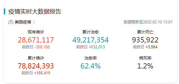 在疫情的影响下,很多行业遭受重创,但医疗设备行业却迎来爆发式增长。以美国疫情情况为例,截至2022年2月10日13时(北京时间)美国已累计确认新冠感染者7882万人,累计死亡94万人。