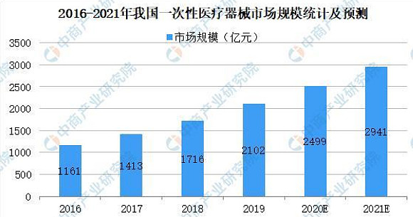 据中国产业研究院统计数据,2019年,中国一次性医疗器械市场规模达2102亿元,2021年中国一次性医疗器械市场规模达到2941亿元。
