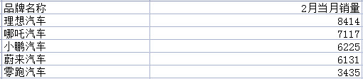 但同时近期不好的消息也有传出,2月销售数据上来看,蔚来已经由蔚小理变成了理哪小蔚的排序,蔚来首次跌出前三。整个2月份,蔚来交付了6131辆汽车,同比增长9.9%,而同期的$理想汽车(LI)$ 理想交付量高达8414辆,实现了265.8%的增长,哪吒首次跻身第二的位置,交付量7117辆,增幅为255%,小鹏也完成了对蔚来的超越,2月共计交付6225辆,增幅为180%。