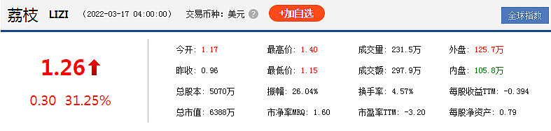 财报发布后,荔枝的股价不断抬升,3月17日当日涨幅高达31.25%,为近年来单日增幅最高。作为国内在线音频第一股,荔枝于2020年1月17日登陆纳斯达克,发行价为11美元。上市当天,其股价涨至15.25美元,最终报收11.63美元。