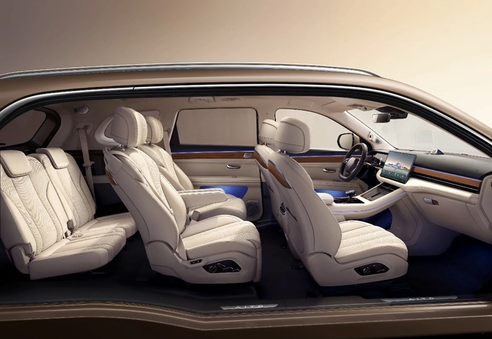 问界M7车身延续了AITO品牌家族化设计语言,标志性的六边形格栅及鹰翼贯穿式尾灯极具品牌辨识度,专属投射迎宾灯则呈现满满的仪式感。内饰则体现出以人为本的极简设计风格,10.25英寸的曲面全液晶仪表盘和15.6英寸2K HDR中控大屏带来了更多的科技感,超纤麂皮[2]、樱桃木质纹理、晶钻挡把等细节处则彰显匠心情怀。问界M7全系提供六款车身颜色、四款内饰颜色,满足不同用户个性化选择。