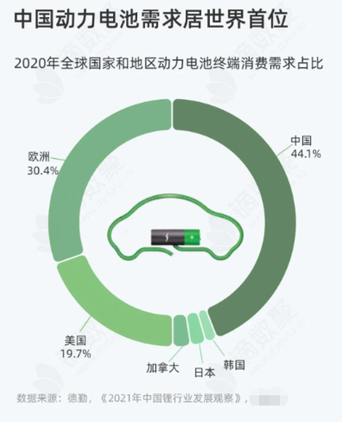 据德勤数据显示,2020年,全球国家和地区动力电池终端消费需求占比中,中国市场占比高达44.1%,是世界首位,2021年中国消费占比有增无减,中国动力电池市场是被资本公认的体量高达万亿级的超级大市场,这样的趋势下带火了中国整个锂业。