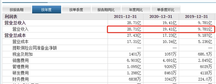 翻看乐歌股份近三年财报可以发现,乐歌在2019年总营收为9.781亿元,2020年总营收增至19.41亿元,增幅高达98.4%,几乎翻倍,2021年总营收增至28.71亿元,增幅为48%,在疫情的影响下取得这样的增幅实属不易。