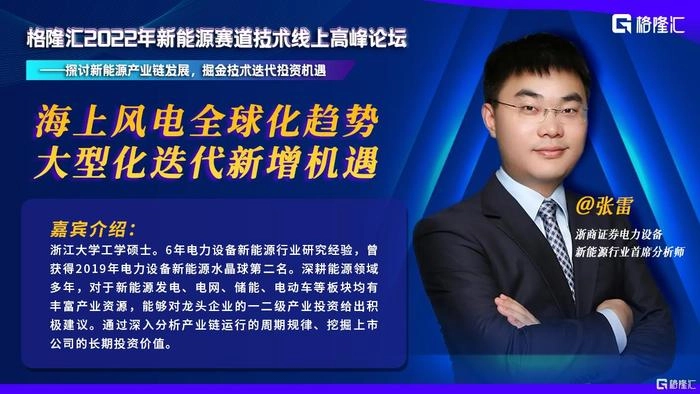 在风电专场上,浙商证券电力设备新能源行业首席分析师张雷为观众带来了对风电的精彩分析。他认为,风电装机增长确定,下半年抢装有望带动零部件量利改善。海上风电全球趋势,大型化迭代加深技术壁垒。