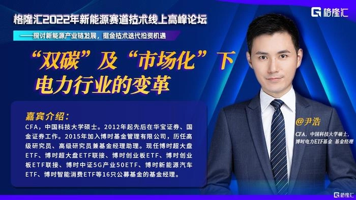 电改专场中,博时电力ETF基金经理尹浩发表了对电力行业变革的思考。他指出在“双碳”目标和电价改革背景下,新能源发电运营已经成为了当前电力行业的一个重要组成部分, 并分析了电力子行业投资的一些机会。