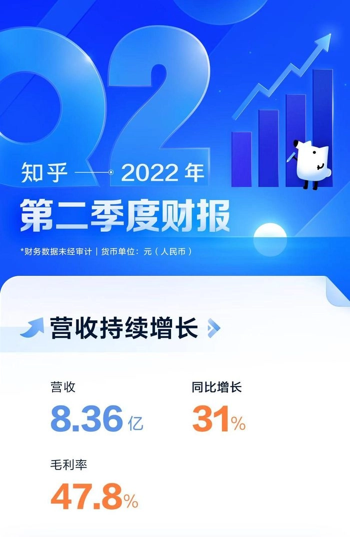 知乎2022年Q2财报:营收8.36亿元同比增长31%