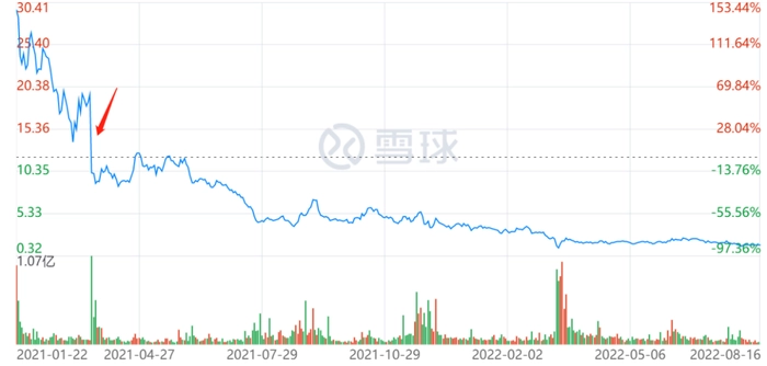 这短短一条变动,给整个电子烟行业带来大地震。龙头雾芯科技股价直接腰斩,从35美元的最高价跌至10美元,此后便一蹶不振。截至8月31日,雾芯科技股价仅剩1.43美元,已跌去九成;市值22.13亿美元,相较542亿美元的顶峰已经缩水500多亿美元,折合人民币3000多亿元。