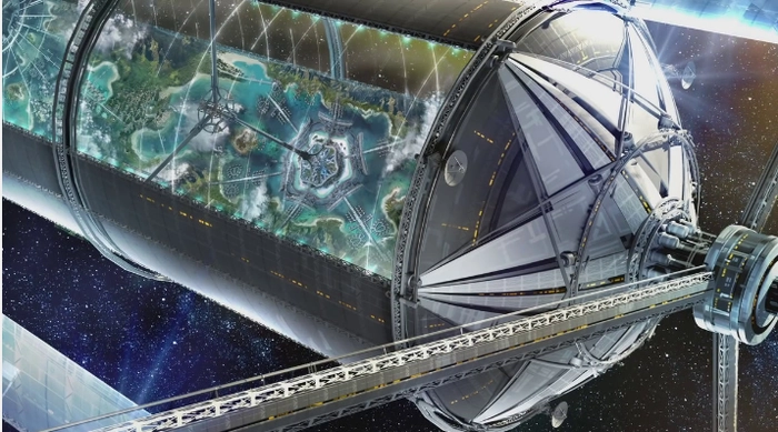 但贝索斯引出的“奥尼尔圆柱体”太空殖民站同样前卫,贝索斯计划的殖民站是长20公里,直径5公里的超大太空站,建筑材料是陨石等天体材料,可以在宇宙内任何充足阳光轨道内获取阳光,由自转产生离心力而运行,优点是一切环境可以由人类自行设计和控制,据贝索斯称可以承载一千万人。
