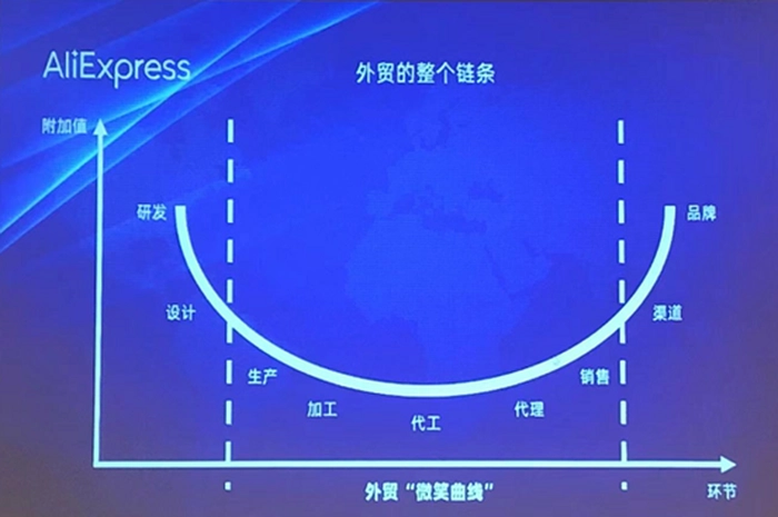 站在速卖通平台的角度,如果能让拥有供应链优势的厂家直面消费者,砍去了中间环节,增加了产品在研发方面的竞争力,从而提升品牌附加值,或许就让这些“厂牌”产品拥有了挑战“微笑曲线”两端机会。