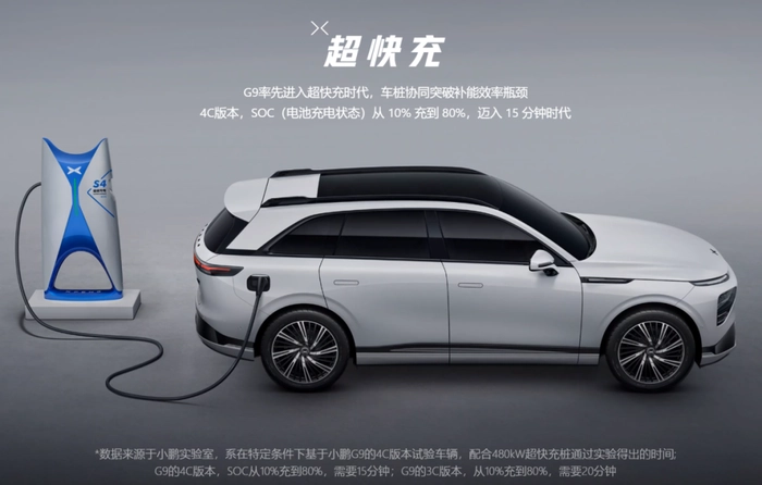一是“超快充电”,G9搭载了国内首个量产的车端800V高压SiC平台,充电效率明显优于400V平台的车型。