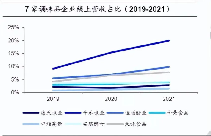 相比海天味业的矛盾和纠结,其他竞争对手就在该领域玩得风生水起,比如千禾味业和中炬高新,千禾味业的线上营收占比超过20%,中举高先的餐饮渠道占比仅为20%,其他高达8成均为供应零售和线上渠道贡献。