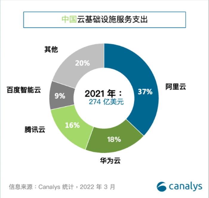 事实确是如此。根据Canalys 最新数据显示,2021中国云市场规模达274亿美元,增幅高达45%,比2020年增加了85亿美元。预计2026年中国云市场规模将达850亿美元,年复合增长率25%。