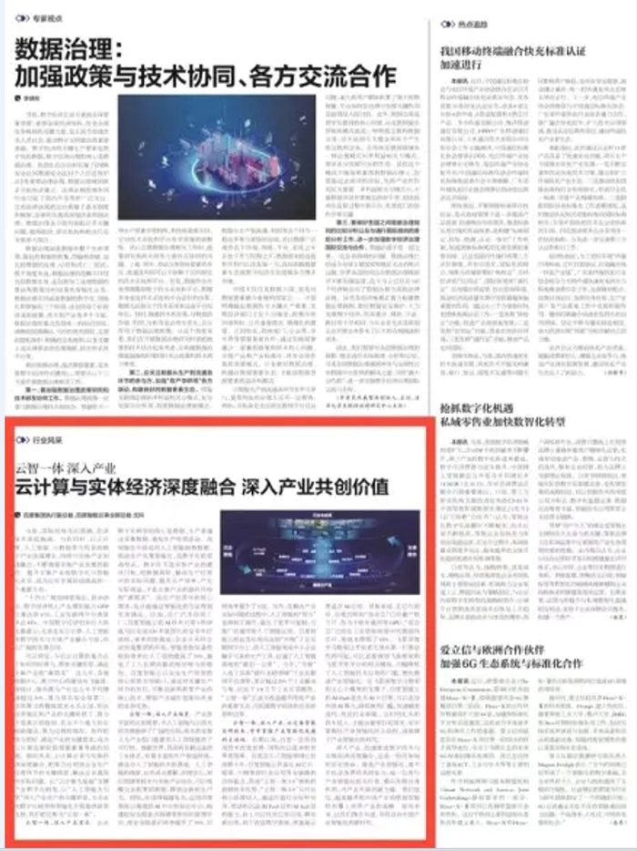 10月17日,在20大召开期间,工业和信息化部直属媒体《人民邮电报》刊载一篇名为《云智一体 深入产业 云计算与实体经济深度融合 深入产业共创价值》的文章,文章作者是百度执行副总裁、百度智能云事业群总裁沈抖,他文章中指出百度云计算的重点在于如何用好算力,聚焦关键场景,满足实体产业的“真需求”。云智一体,深入产业,需要不断深入产业需求、深入产业场景、紧抓自研技术,牢牢掌握产业智能化发展的主动权。百度智能云已经成为国内数字化与实体经济融合的典型代表。