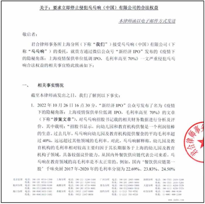 (媒体收到的乓乓响律师函)