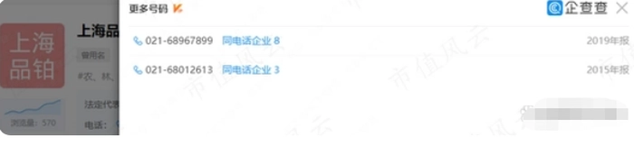 黄建义在2015年就名义上市剥离了上海品铂农产品专业合作社,但直到2019年年报,品铂的电话还与黄建义旗下上海贤至实业有限公司相同。这是疏漏还是有意为之,就不得而知。