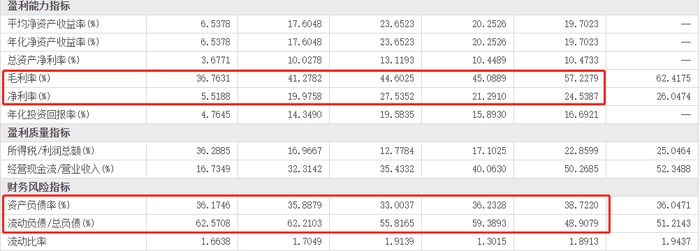 再细看阿里近五年来归母净利润的增幅,2018年的增幅为46.7%,2019年为37.1%,2020年达70%,但随后2021年仅为0.8%,2022年则是首次出现负增长的-59%。和归母净利润增幅相对应的是阿里近五年的毛利率变化,近五年阿里的毛利率出现不断下滑的趋势,由2018年的57.2%下滑至2022年的36.8%,净利率除去2020年的27.5%之外整体也同样呈现下滑趋势,由2018年的24.6%下滑至2022年的5.5%,而在2021年阿里的净利率仍高达20%,一年内净利率暴跌14.5个百分点。