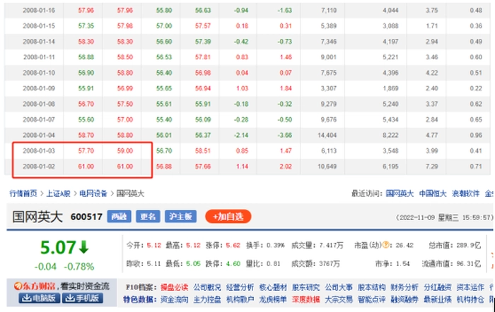 杨东伟2020年10月27日接任国网英大董事长以来股价并未得到提振,在接任的当天,国网英大的股价6.55元/股,目前已经长期低于6元以下,逐渐下探至11月9日的5.07元/股。自更换董事长以来,国网英大的股价已经下跌了近1/4。