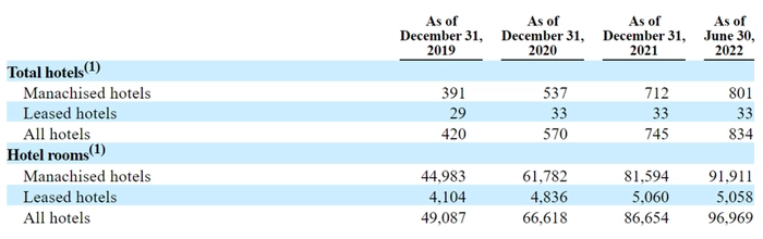 从财务数据来看,亚朵过去三年来均实现盈利。招股书披露数据,2019至2022年上半年,亚朵分别实现营收15.67亿元、15.67亿元、21.48亿元、9.67亿元;净利润为0.61亿元、0.38亿元、1.40亿元、6754.5万元。