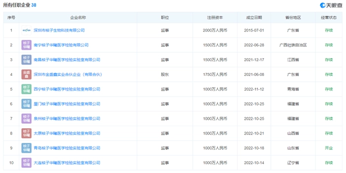 虽然按照我国法律规定,新成立公司可以不实缴注册资本,但8月8日才注册的兰州核子华曦公司,能够迅速拿下大单参与到兰州核酸检测之中,引发网友热议。随后有媒体扒出兰州核子华曦的实际控制人为张珊珊,而诡异的是,在很短的时间里,张珊珊神通广大地在全国范围内关联着35家核酸公司,辐射国内大片区域。天眼查显示,张珊珊所在任职企业为38家,担任高管的有36家,足迹涉及东北、西南、西北、东南、华南等大量区域。