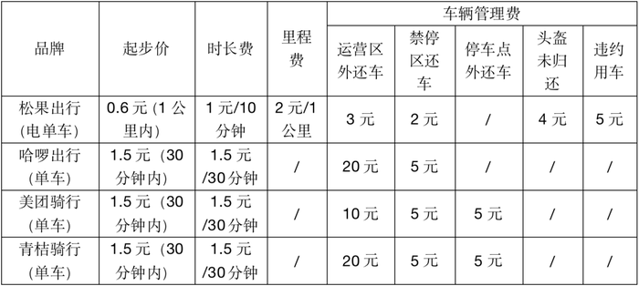 从计价规则来看,同样时长的路程,松果出行的价格要贵上不少。以30分钟路程为例,共享单车的骑行费用都为1.5元,而电动二轮车行驶里程约为10公里左右,有时长和里程超出费用,松果出行的费用可高达22.6元。