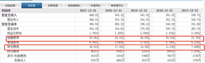 海信视像的财报显示,2022年三季度,销售费用为24.19亿元,是研发费用的1.6倍,2021年销售费用为35.36亿元,是研发费用的1.9倍,2020年销售费用为33.33亿元,是研发费用的1.9倍,近三年销售费用几乎都是研发费用的2倍左右,2022年前三季度虽然下滑至1.6倍,但依然是家“重营销,轻研发”的科技公司。