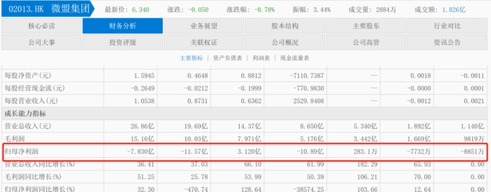 微盟半年报显示,上半年总营收为9亿元,同比下滑6.2%;经营亏损为6.59亿元,同比增幅17.6%,经调整净亏损为5.67亿元,同比扩大499.2%,其中毛利为5.98亿元,同比下降21.4%。整个上半年,微盟是营利双降,亏损翻了5倍。