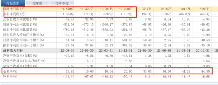 从目前紫晶存储4.6亿元的总市值来看,逾期汇票压力巨大。逾期后,紫晶存储可能会面临支付相关违约金、罚息等情况,这样一来,必将导致财务费用增加,进而对本期利润或期后利润产生一定影响。以最近报告期为例,2022年三季度紫晶存储营收1.540亿元,净亏损1.870亿元。2021年四季度至今,所有报告期内的净利润都是负值,说明紫晶存储面临较大经营压力,其毛利率由之前的40%左右,直接下跌到近4个报告期内的10%左右。