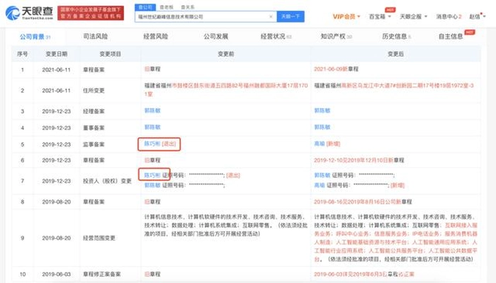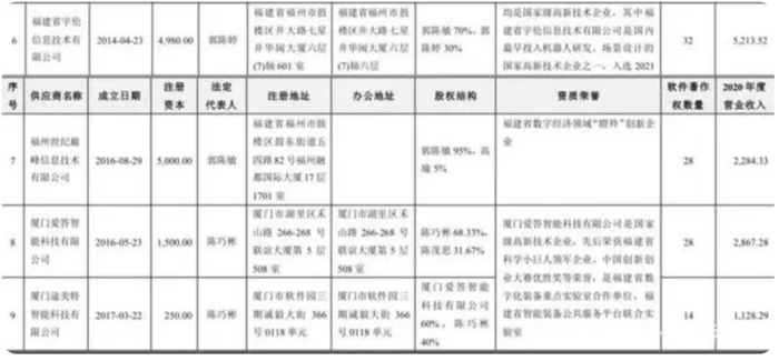 不正常的事不止于此,供应商的过度关联也成为紫晶存储另一不正常的点。BT财经通过梳理各家供应商的关联时发现,福建宇伦、世纪巅峰、爱答智能、途美特智能这四家供应商存在某种关系,比如世纪巅峰的投资人中曾有陈巧彬的名字,而陈巧彬同时又是爱答智能与途美特智能的股东,仅仅是一个巧合还是意外不得而知。再以福建宇伦的股东郭陈敏为例,此人也曾在爱答智能和途美特智能担任高管,这如果是巧合的话很难解释的通。