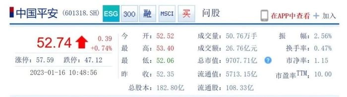 1月16日,中国平安股价上涨2.83%至52.74元,创出2022年3月以来新高。若从10月31日低点算起,中国平安区间最大涨幅已经超过40%。