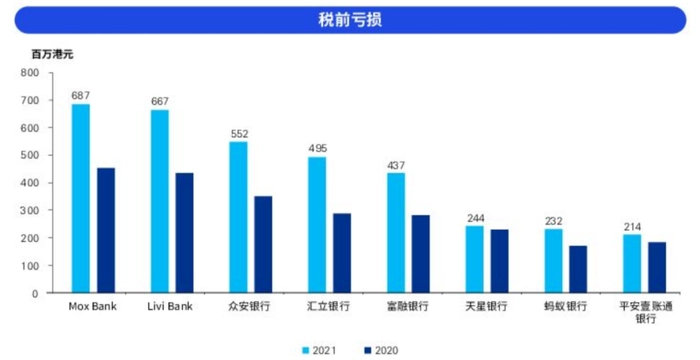 毕马威中国在《2022年香港银行业报告》(以下简称“《报告》”)中表示,2021年,平安壹账通银行的业绩相较于其他虚拟银行表现最佳,因为与2020年相比,它的税前亏损金额和增幅都是最小的。2022年上半年,平安壹账通银行在亏损上继续保持了领先优势,亏损收窄幅度是最大的。