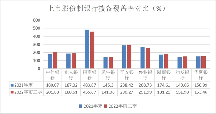2022年前三季度,九家股份制银行中,招商银行、平安银行和华夏银行的不良贷款率较2021年末略有上升,招商银行涨幅最大,增加了0.04个百分点,另外两家则均增加了0.01个百分点。兴业银行的不良贷款率维持在0.01%没有变化,其余五家则有所下降,降幅最大的为中信银行,不良贷款率减少了0.12个百分点。