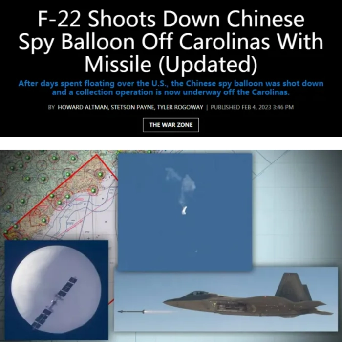 中国外交部证实这只是一个中国民用的无人气象飞艇,但是被美国别有用心当成“间谍气球”闹剧折腾了好几天,最终无人飞艇下降到2万米以下后,以美军出动两架F22发射AIM-9X导弹击落而告一段落,19800米取得“战果”是美军有史以来最高击落的记录。