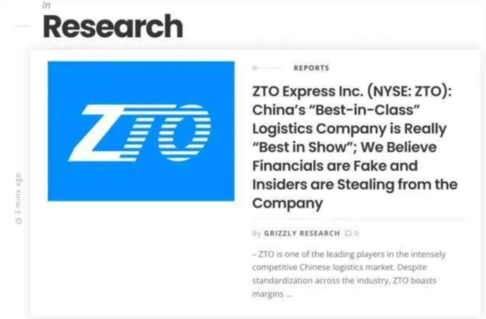 中概股企业中通被做空机构盯上,曾做空蔚来的灰熊再次出手了。